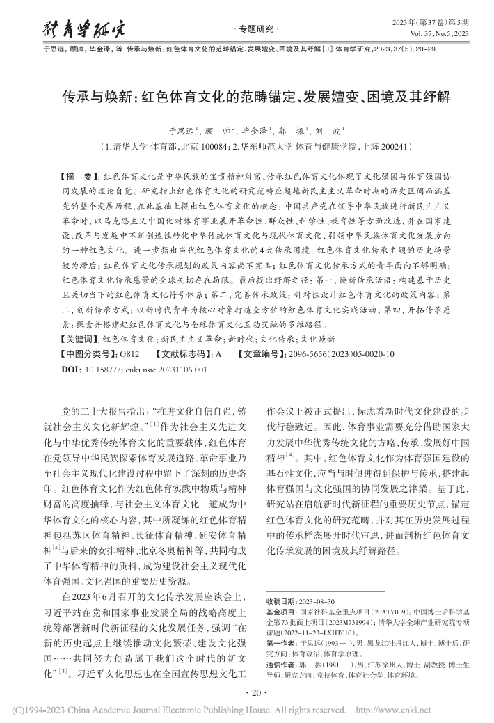 传承与焕新:红色体育文化的范畴锚定、发展嬗变、困境及其纾解