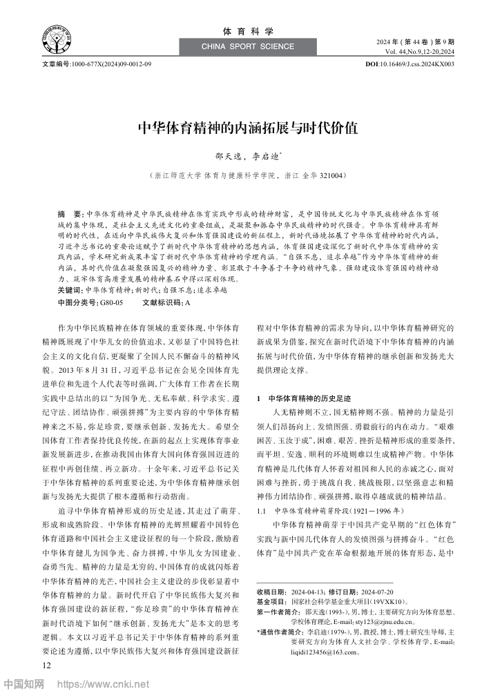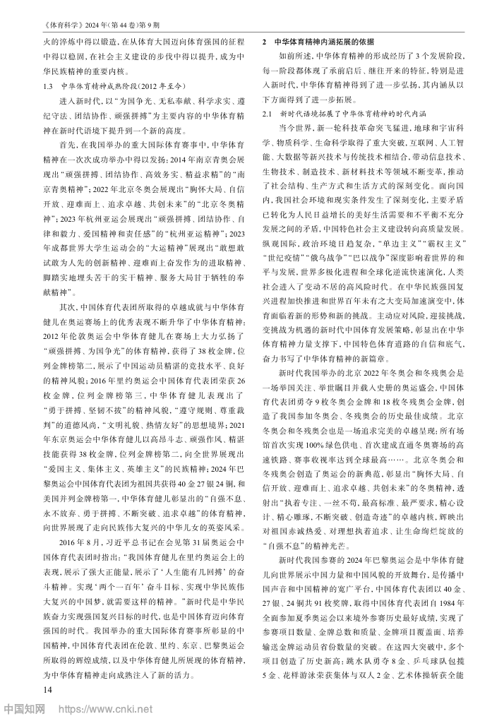 中华体育精神的内涵拓展与时代价值